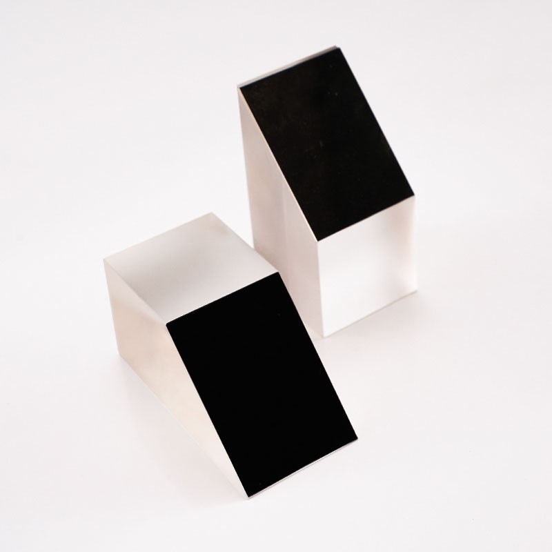 半五角棱鏡是一種特殊的光學元件,它的結構特點是由五棱鏡對切而成,是光束定角度(通常為45°)轉向器件。半五角棱鏡具有許多優點,在應用中,半五角棱鏡常被用于望遠鏡等系統中,使光束實現固定的45°轉折。半五角棱鏡的反射面通常鍍有鋁膜,并加以黑漆保護,而其入射面和出射面則鍍有MgF2(氟化鎂)增透膜,以增強其光學性能。